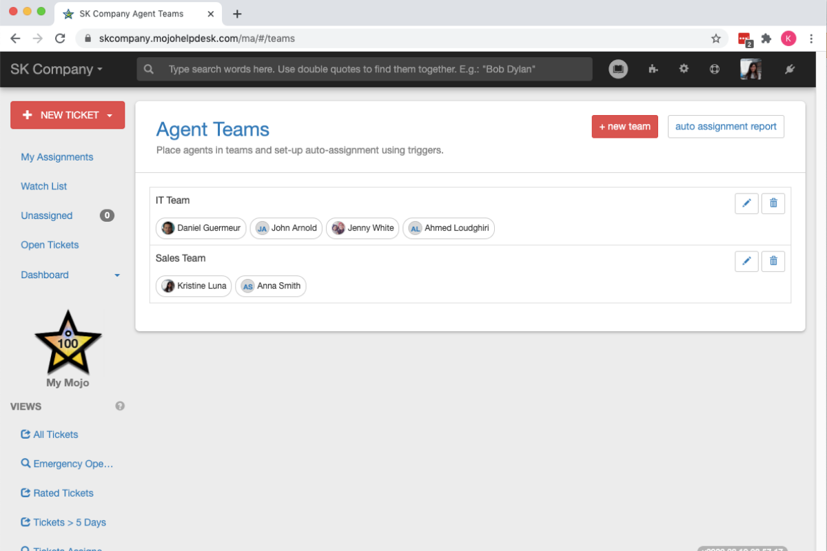 Before auto-assignment can be configured in a trigger, admins of the help desk will need to organize agents into teams. Teams are primarily used for auto-assignment, however you can expect more uses for this in the future. Note Agents can belong to multiple teams.