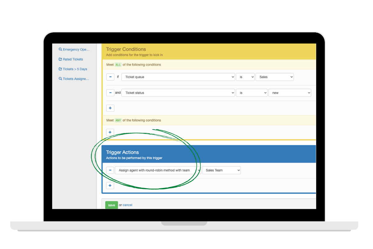 We've added a powerful new action in triggers, allowing admins to configure auto-assignment of tickets. It could either be round-robin, where assignment occurs in order and repeats in a cycle, or the other option is load-balanced, in which case the system takes into consideration each agent's open tickets