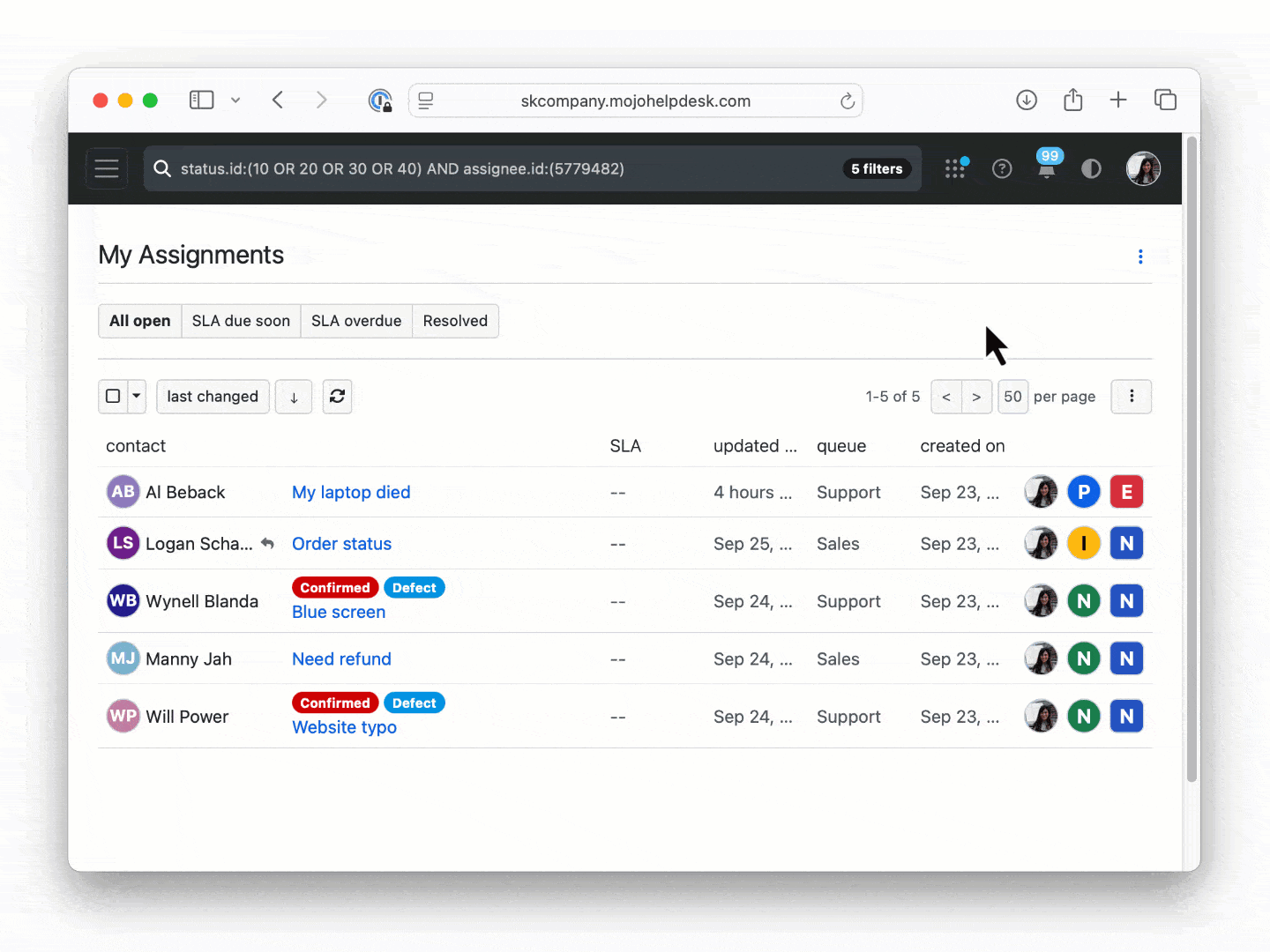 All of these open a ticket in our help desk.