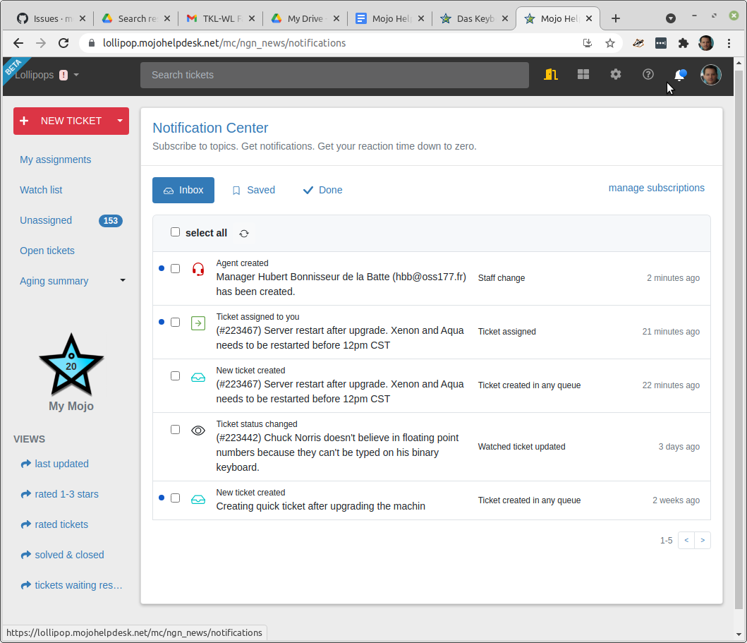 Mojo Helpdesk notification center