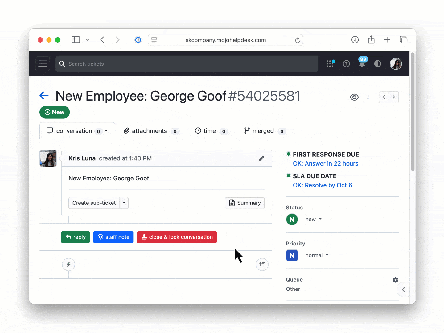 Use the Tasks panel on the right sidebar of each ticket as a built-in to-do list.